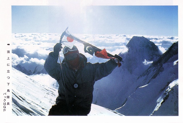 パキスタン カラコルム ガッシャブルムI峰(8068m)に登山隊を派遣。 頂上に立つ下鳥隊員。バックはガ…